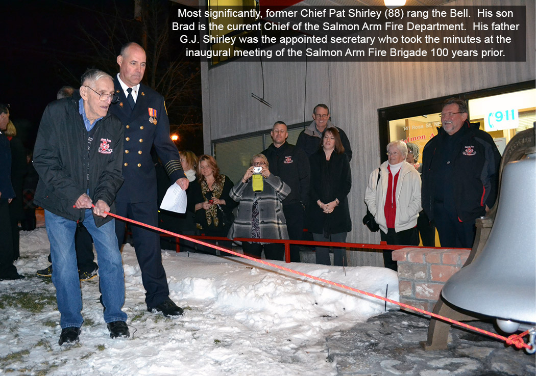 In 2012, the SAFD emblem was changed to commemorate the Centennial and hosting the BC Vounteer Firefighter's Seminar. This emblem featured the Salmon Arm Wharf, one of the more recognizable lanmarks in the city.