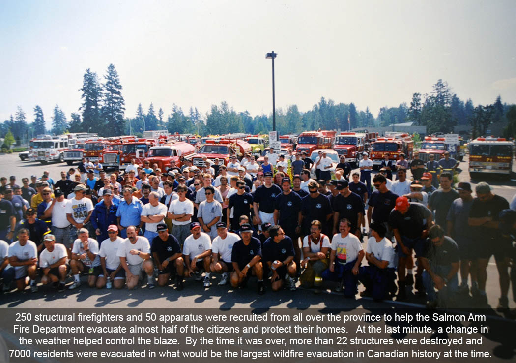 The City of Salmon Arm Volunteer Fire Department serves the City of Salmon Arm by providing fire protection, prevention, public education and other related services. The Department is a composite of career and volunteer assets consisting of 4 career and up to 80 volunteer members stationed at 4 halls in the protection area.